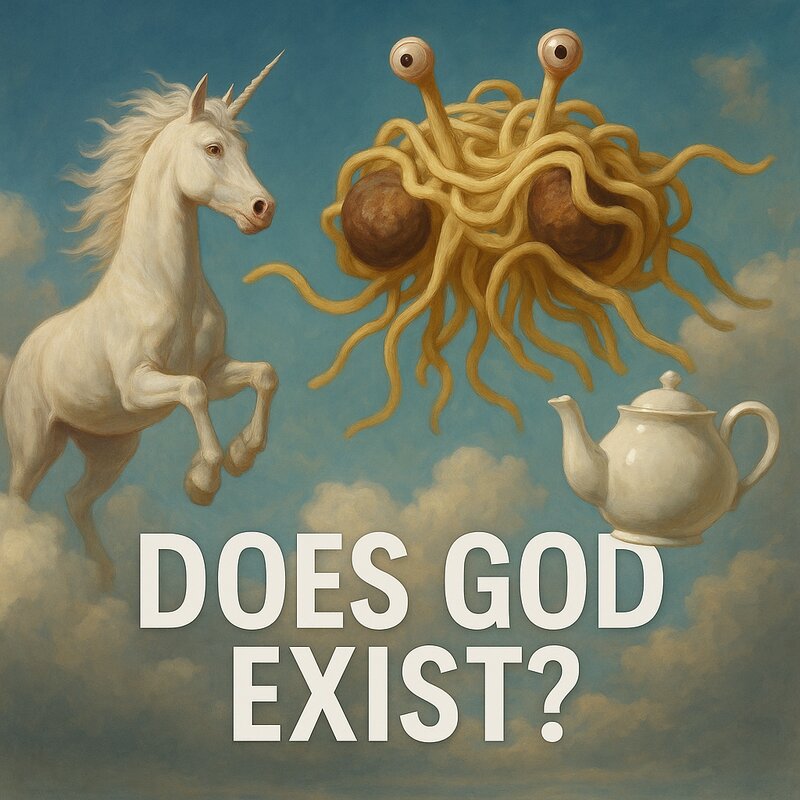 believe_in_god ← Previous Next → An AI generated image. A painting of a unicorn and teapot and a spaghetti monster in the clouds.