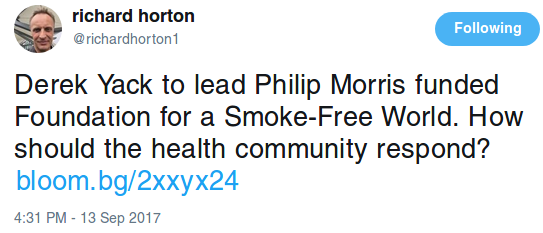 Richard Horton’s tweet on the Foundation for a Smoke-Free World